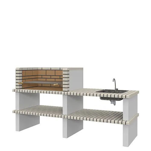 Este pode ser escolhido em tijolo matizado, branco ou templar. Pode adicionar estas opções ao seu barbecue: grelha simples ou grelhador grande de pousar lacado com caixa.