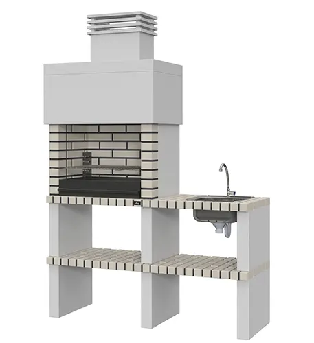 A Churrasqueira Ericeira 037B/2LL2 é feita de micro betão liso branco, com laterais e pés em micro betão texturado cinzento e zona de fogo em tijolo e cimento refratário. Esta destacasse pelas suas linhas modernas. A churrasqueira tem ainda uma chaminé que facilita a extração de fumos, disponibilizamos algumas opções para acrescentar à sua churrasqueira.